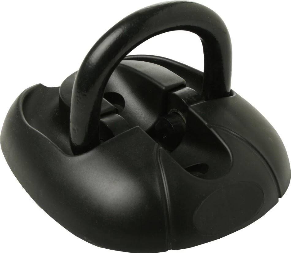 A floor or wall mounted anchor for indoor and outdoor use. This lock has a hardened solid steel lock body. Strong 14mm dia alloy steel shackle which lies flat and concealed when not in use. The main unit is constructed from heavy duty hardened steel plates and finished off with a polypropylene cover. The anchor comes complete with M10 raw bolts for securing into concrete and ball bearings which fit into the bolt heads so they cannot be removed or undone.