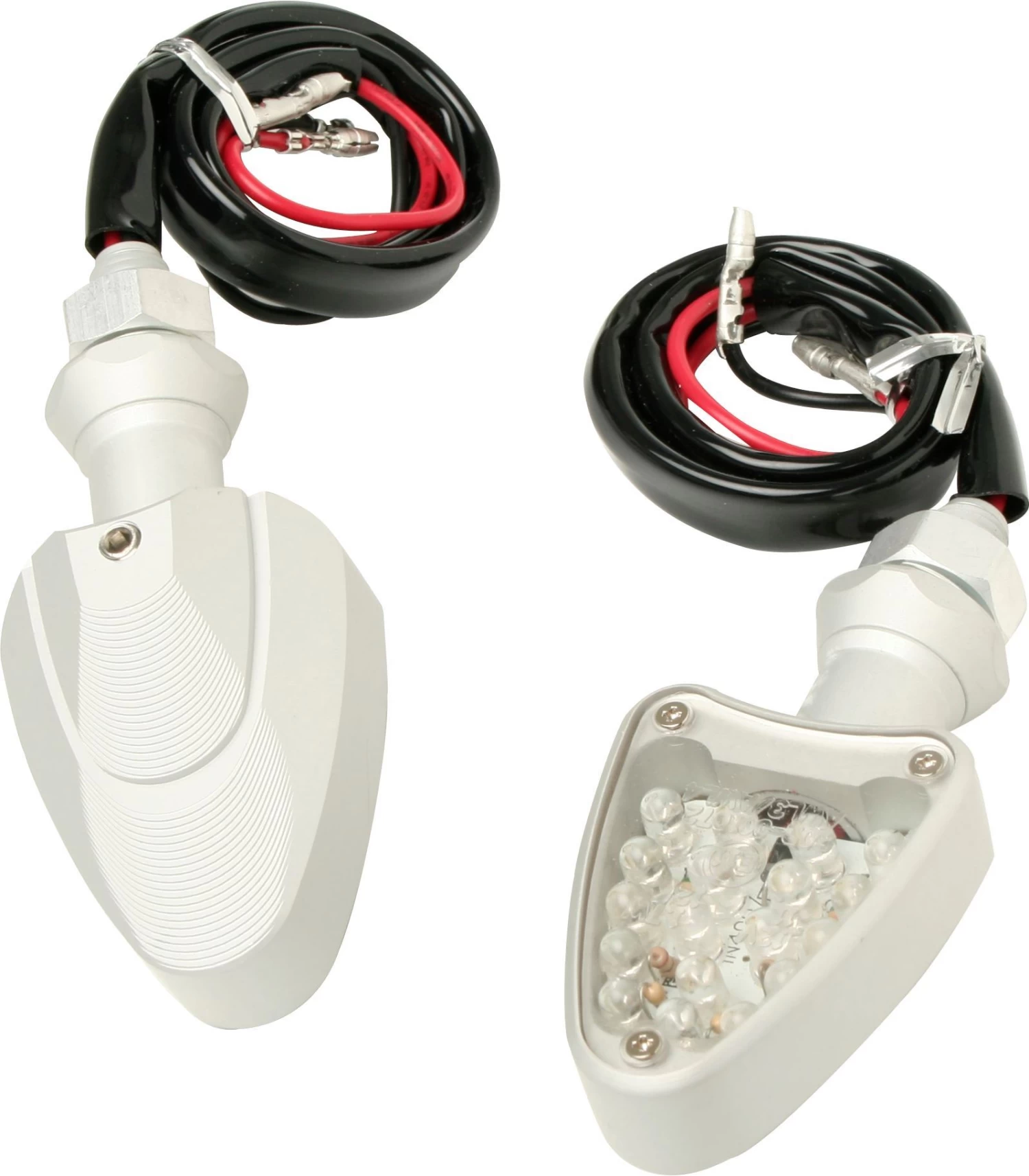 A premium set of alloy indicators to bring your motorcycle styling up to date, utilising the latest LED technology. E-marked and approved for road use they have an M10 thread fitting and are supplied with spring washers and nuts.