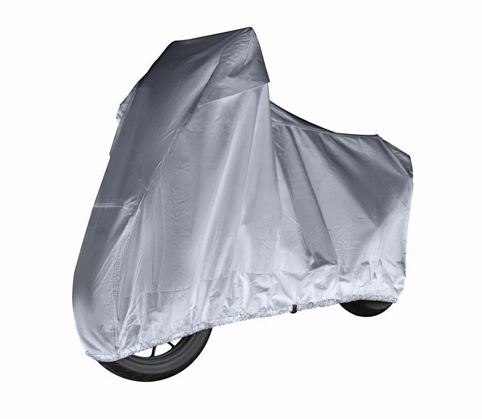 Manufactured from waterproof and durable 100% polyester with elastic hems for a secure fit. The elastic hems ensure the cover stays in place and the strategically positioned eyelets facilitate the use of a lock and chain. As well as keeping the motorcycle or scooter dry it will provide protection from sun, rain, dust and UV exposure. If the motorcycle or scooter is kept outside, hiding it from prying eyes with a cover can be a deterrent to thieves.