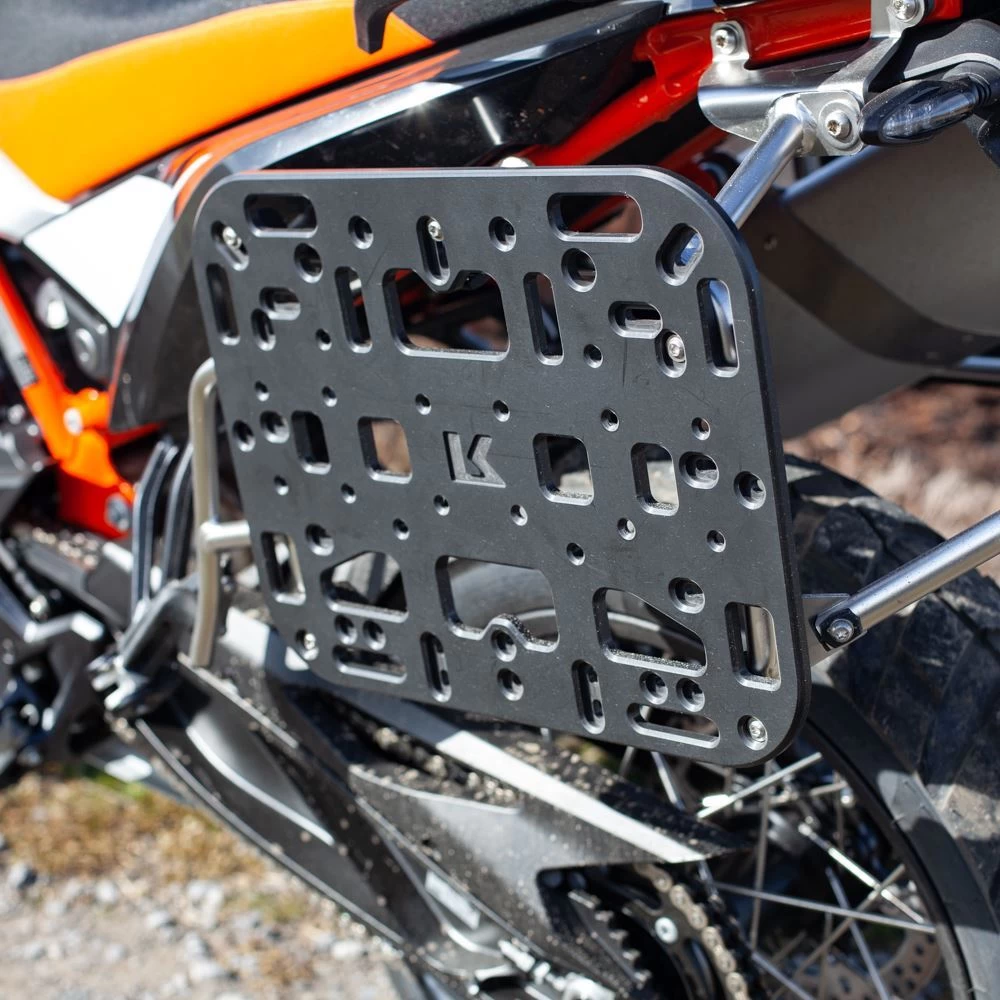 OS-Platforms provide a solid mounting location for any Kriega OS-Soft Panniers. CNC machined from virtually indestructible Nylon 6, OS-Platforms are lighter than alloy and without fatigue issues. Engineered into the design are optional attachment points, allowing you to mount single or double fuel and water containers or a combination of OS-6 or OS-12 Adventure Packs and containers. The flexibility of the design enables you to set up the bike to suit your adventure.